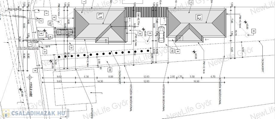 Egy 1323 m2-es telken helyezkednek el, a két háznak közös fala nincs, tárolókon keresztül csatlakoznak egymáshoz. Utcafronti (L1) ház: 94 m2 + 17 m2 tároló, (mely akár egy 5 szobának kialakítható) 517 m2-es telekhányaddal rendelkezik.