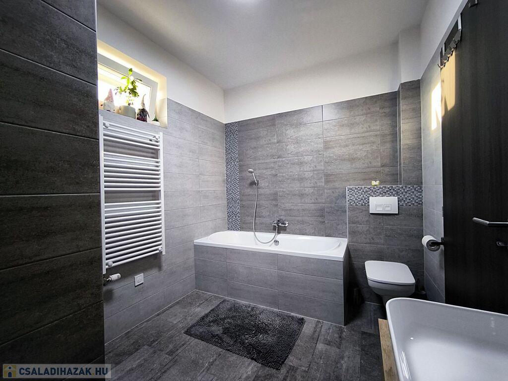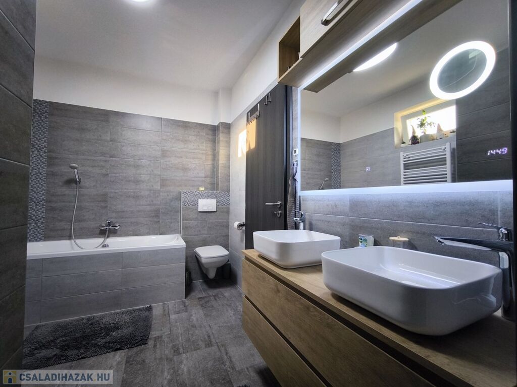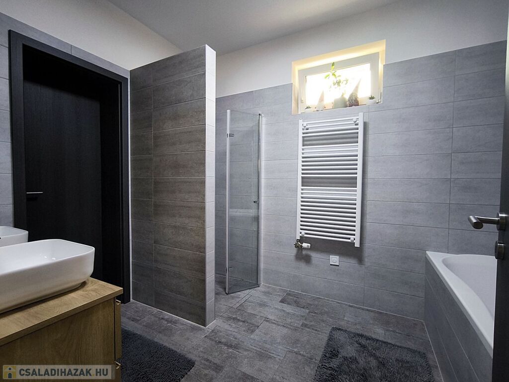 - A fürdőben épített zuhanyzó és fürdőkád valamint dupla mosdó is beépítésre került