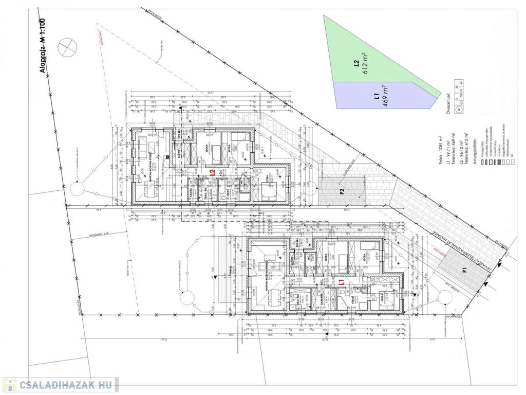 Az ingatlan egy egymás mellé épülő teljesen külön bejáratú ikerház 1. lakása, ahol házak nem kapcsolódnak egymáshoz. A két telekrész kerítéssel körülkerített.