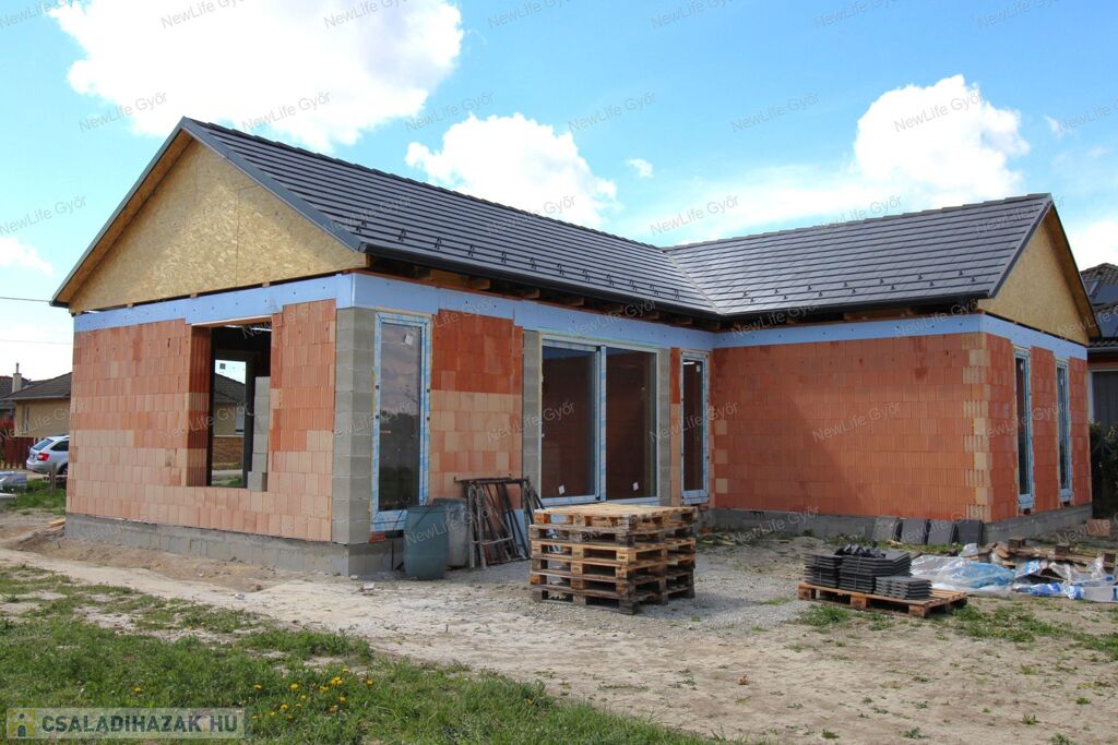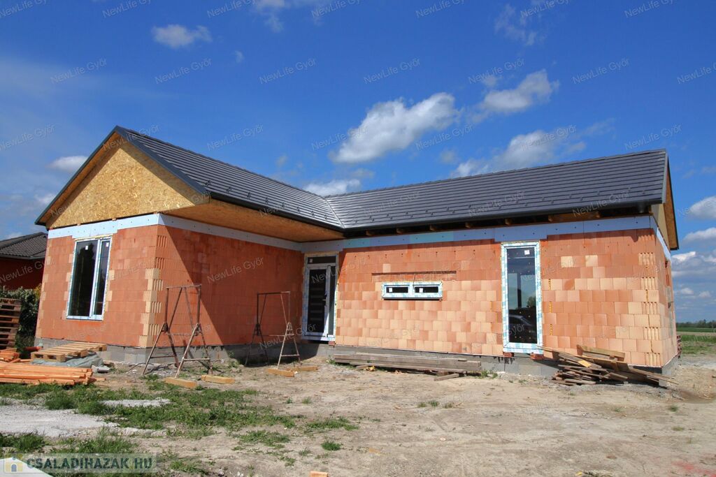 Folyamatban lévő építkezés Győrzámolyon! Az egyik legkedveltebb szigetközi településen, Győrzámolyon ajánlom megvételre ezt az 858m2-es telekre épülő 128 m2 alapterületű (+35nm terasz) 4 szobás, nappali-étkező-konyhás házat.