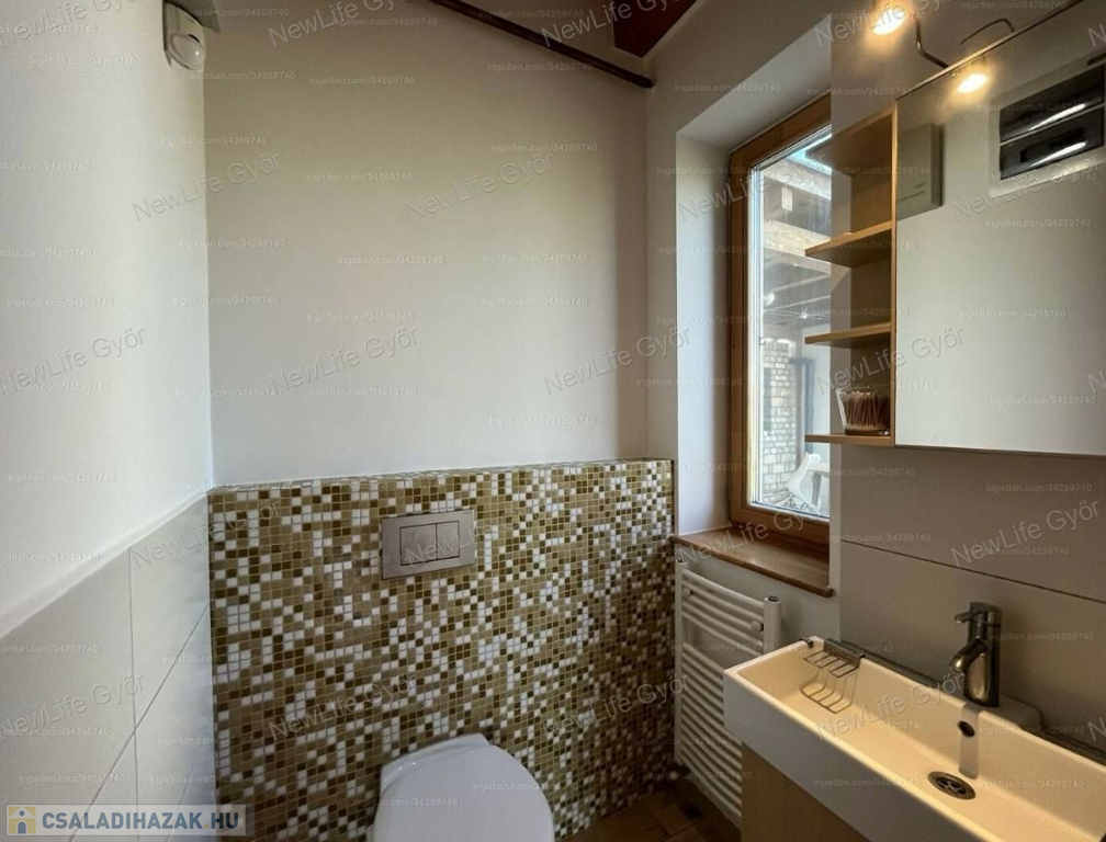 Az ingatlan kiváló elhelyezkedésű csendes zsákutcában, közvetlenül a töltés mentén fekszik; 4 perc sétára található a buszmegálló, faluközpont 10 perc sétával elérhető. Autóval Győr belvárosa 15 perc alatt közelíthető meg.