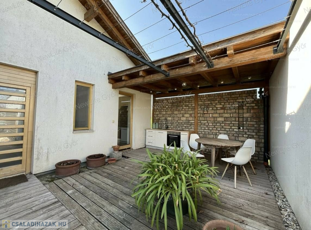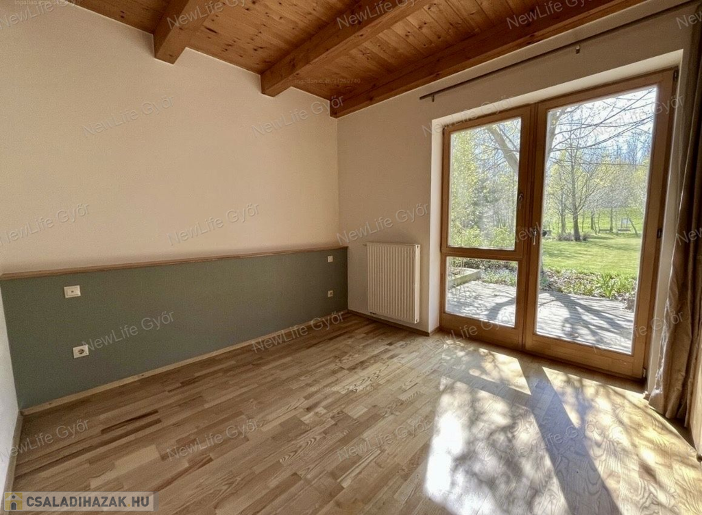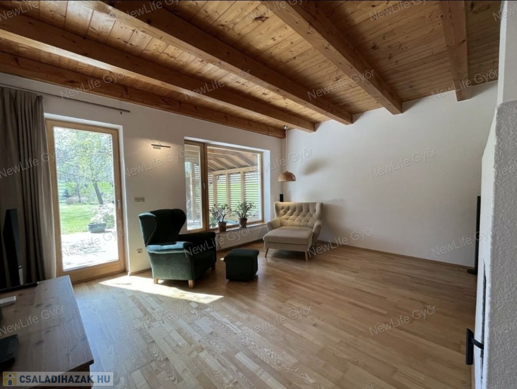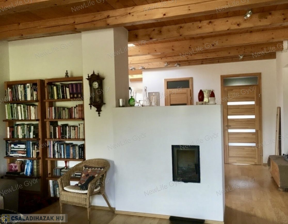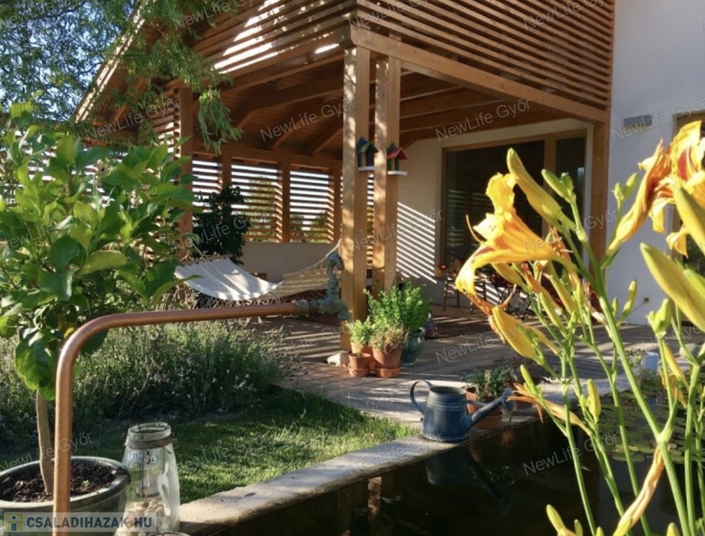 Igazi gyöngyszem Győrzámolyon! A Szigetköz egyik legkedveltebb településén eladó Benes Gábor építész által tervezett és épített, 3 hálószobás családi ház.