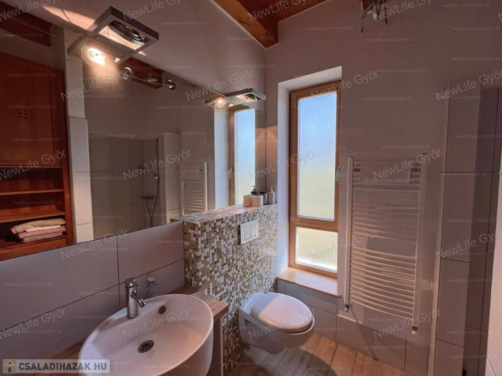 A fűtést Sauner Duval kombi gázkazán, padlófűtés + helyiségenként korszerű lapradiátorokkal, fürdőszobában törölközőszárító radiátorral. A nappaliban található cserépkályha igény esetén plusz meleget és kellemes hangulatot biztosít.