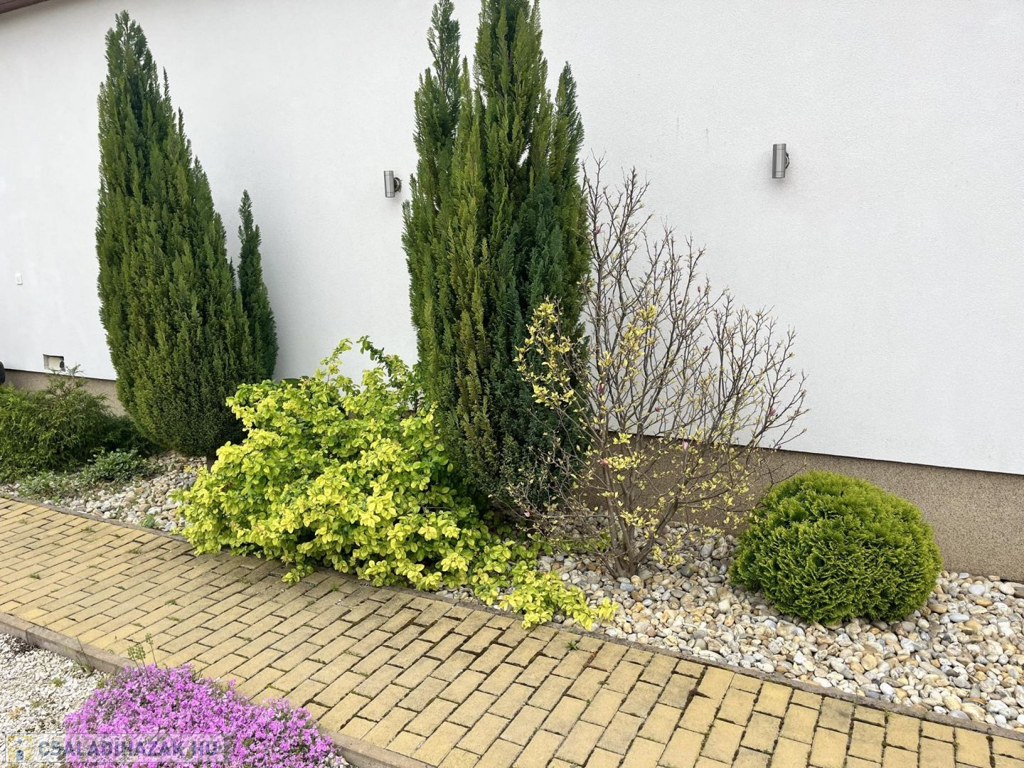 A házikó egy füvesített 980 m2-es telken helyezkedik el, ahol ásott kút, kerti kisház és egy dupla kocsibeálló is a tulajdonosok kényelmét szolgálja.