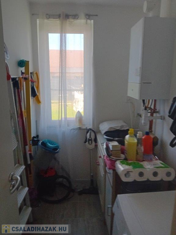 A 30-as Porotherm téglából épült, 10 cm Dryvit szigeteléssel rendelkező ingatlan gazdaságos fűtéséről a háztartási helyiségben helyet kapott Sauiner Duval típusú gázkazán gondoskodik.