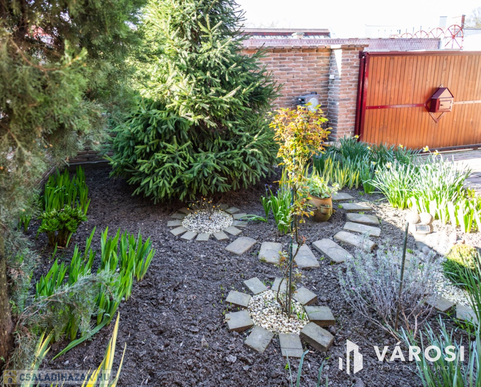 Az ingatlanhoz egy saját, körbekerített, 190 nm alapterületű telekrész is tartozik, melyben 2 autónak helyet adó kocsibeálló is kialakításra került.