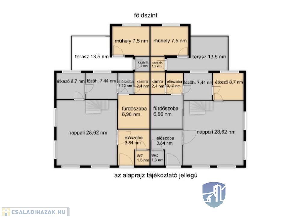Teraszok területe: 38 m2.