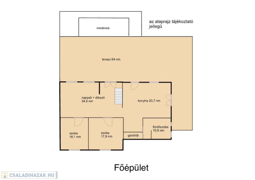 Az ingatlan egy csendes utcában, a Várfürdő közelében található. A főépület alapterülete 106 nm, melyben 2 tágas szoba mellett egy étkezős nappali, látványos rusztikus konyha és tusolóval és káddal is felszerelt fürdőszoba is helyet kapott. A telek alapterülete 755 nm, melyben számos dísznövény, és parkosított udvar mellett egy nagy méretű, sósvizű medence is megtalálható. A ház beton lábazatra épült, tégla falazattal. 2020-ig folyamatosan újítva lett, melynek keretében megtörtént: