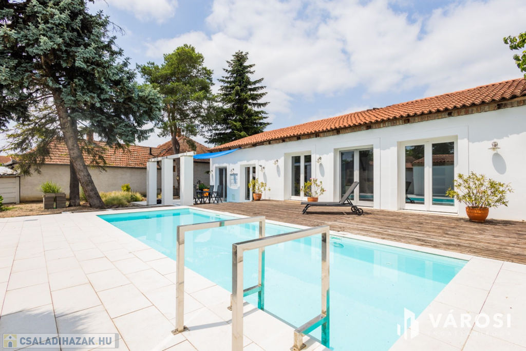 A kertben egy 3x 8 m alapterületű sósvizű medence is helyet kapott, mely tovább fokozza a mediterrán hangulatot. Emellett két melléképület is megtalálható a telken, melyek összközművesek, így tökéletesen alkalmasak lehetnek garázs, tároló, de akár iroda, vagy apartmanoztatási célra is, ennek eldöntése már az új tulajdonosra vár.