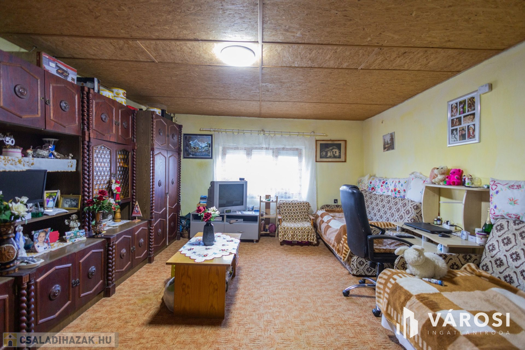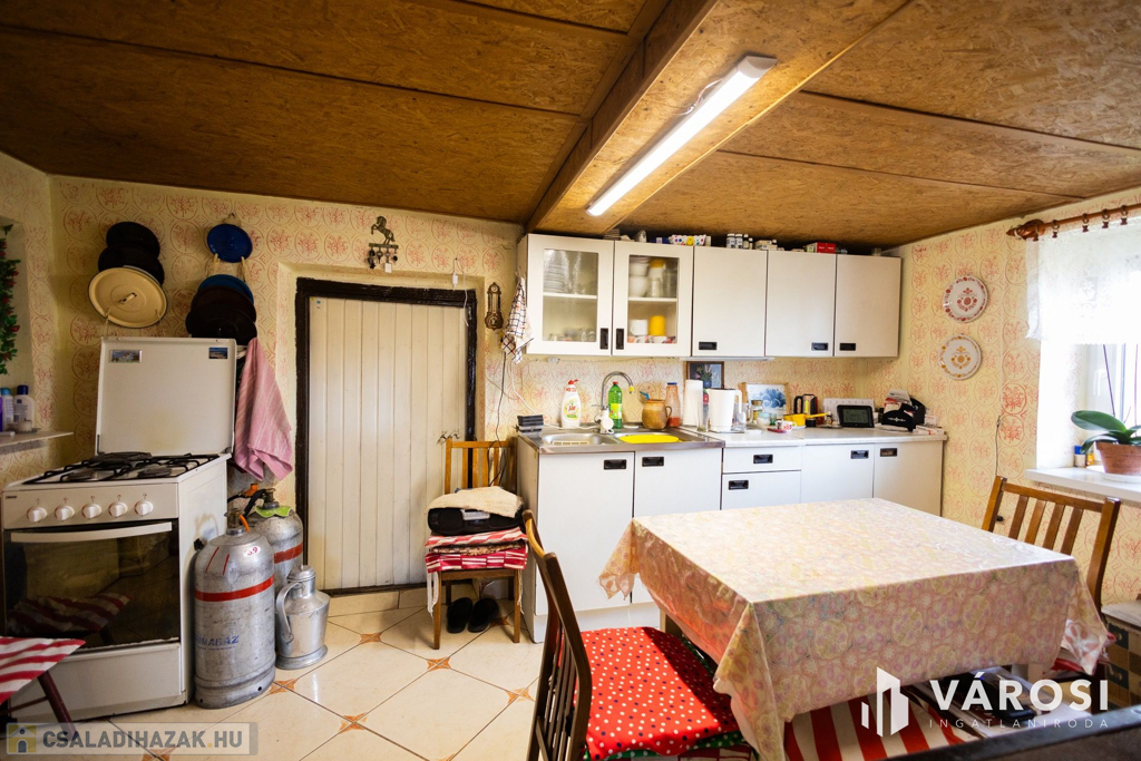 Az ingatlanban a víz hidroforral fúrott kútról megoldott. A szennyvíz emésztőbe van elvezetve. Az ingatlan vályogtégla falazatú, az aljzat betonozott és szigetelt. A villany 1x32A, a fűtésről a konyhában sparhelt, a szobában kis méretű csempekályha gondoskodik. Az ingatlan lakórészének alapterülete 68 nm, emellett egy 20 nm alapterületű tároló, egy szintén csempekályhával felszerelt, lakható, 23 nm alapterületű melléképület, egy nagy méretű garázs, füstölő, fás szín, illetve egy disznóól, istálló és tyúkól is helyet kapott. Jelenleg is tartanak baromfit, birkát, de korábban tehenek és disznók is voltak, így ezen jószágok tartására is tökéletes helyszín.