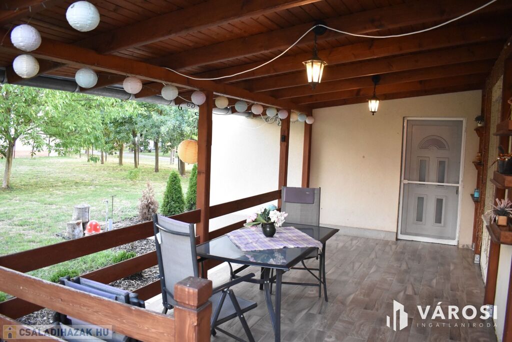 Az ingatlanhoz tartozik egy 1561 m2-es teljesen körbekerített udvar is, ahol egy tágas fedett terasz és egy tégla falazatú melléképület található.