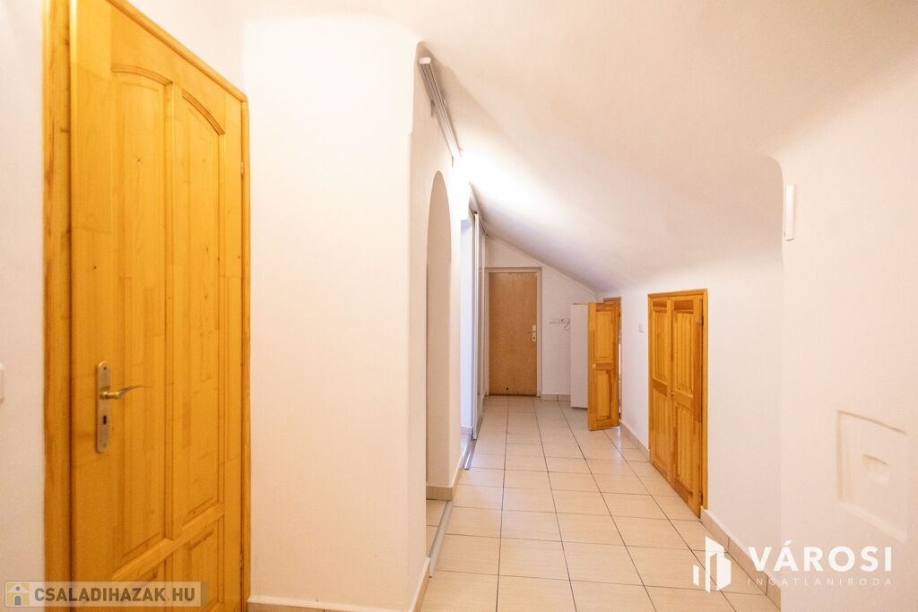 Gyulán a belvároshoz közel eladóvá vált egy praktikus elrendezésű ikerház. Az ingatlan 403 nm alapterületű telken helyezkedik el. A ház a 80-as években épült tégla falazattal, alapterülete 114 nm, melyből a földszint 71 nm (1 nappali - parketta, 2 hálószoba - parketta, 1 konyha - járólap, 1 fürdő - járólap, 1 külön wc - járólap, 2 kamra - járólap, 1 előtér - járólap) , az emelet pedig 43 nm (1 nappali loggiával, 1 hálószoba, 1 fürdő, 1 külön wc, 1 előtér, 1 főzőfülke, 1 kamra). A parkosított kertben egy kocsibeálló, egy fedett terasz és szerszámtároló mellett cserjék, örökzöldek és magaágyás is helyet kapott, melyek öntözése külön mérőóráról megoldott.