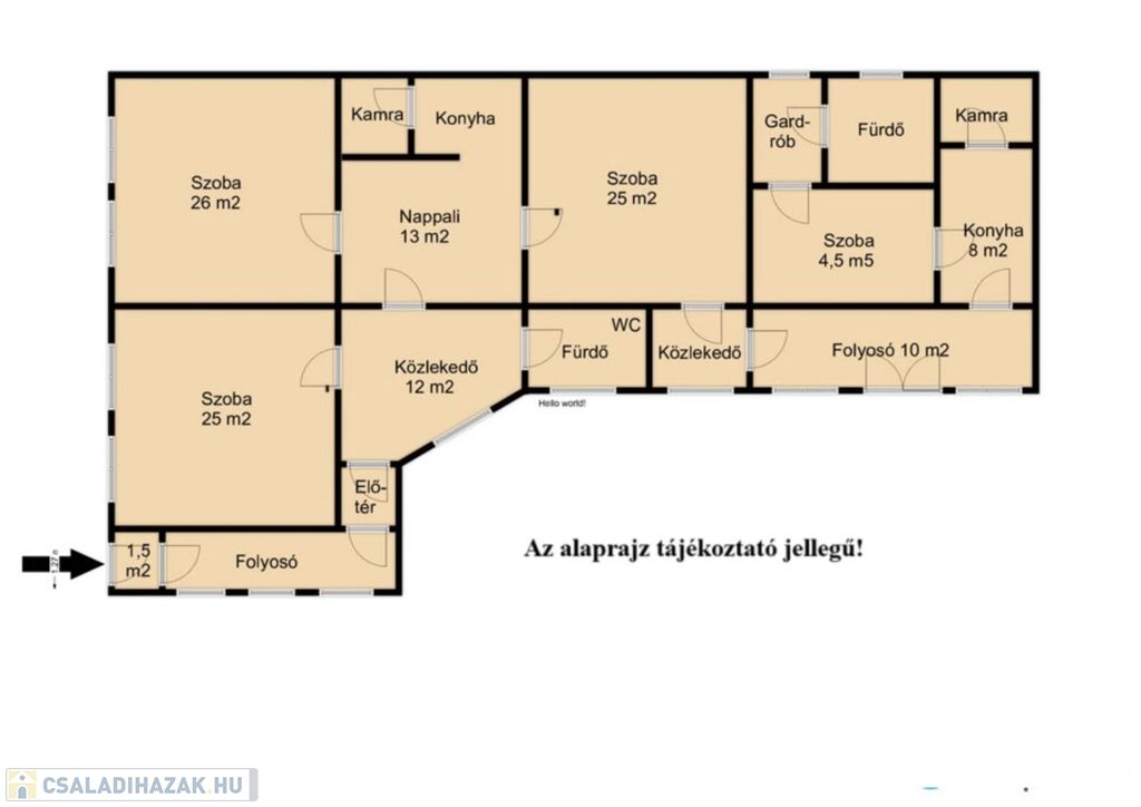 A házban megtalálható nappali, 3 szoba, egy félszoba, kettő konyha és kamra, kettő fürdőszoba wc és közlekedő helyiségek.