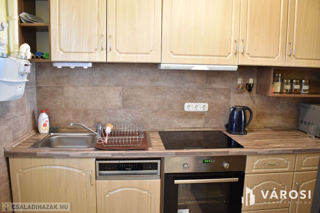 Az ár tartalmazza a szinte új konyha bútorokat és a beépített szekrényeket.