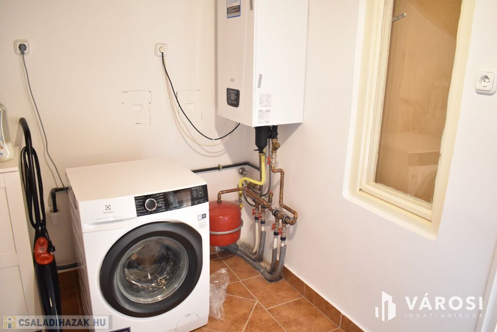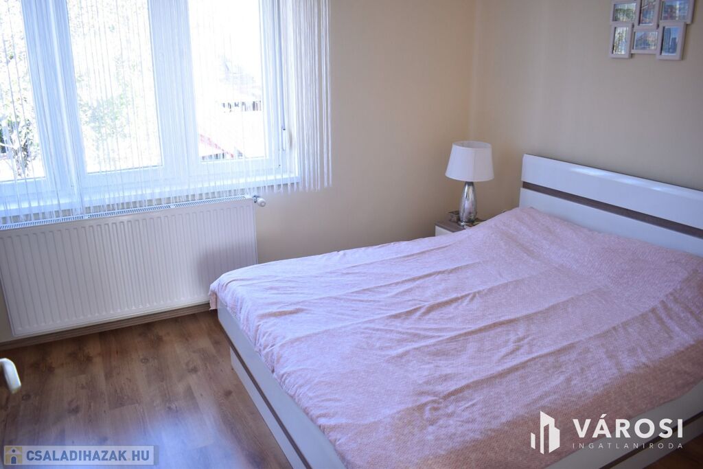 Eladásra kínálom Gyula Fürdővárosában a Magyarvárosi városrészen a belvárostól mindössze 5 perc sétára lévő 1981 évben épült és 2016-évben felújított, csendes utcában található nappali plusz 3 szobás, 2 fürdőszobás sorházat. A ház teljes egészében tégla falazatú, amelyhez két fedett terasz és erkély is tartozik. Az ingatlan parkosított udvarának elején egy tágas garázs és fedett kocsibeálló is található. A háztól pár percre találhatunk élelmiszerboltot, iskolát, óvodát, bölcsödét, játszóteret. A fűtésről és a melegvíz ellátásról egy korszerű Baxi kondenzációs, kombi gázkazán gondoskodik.