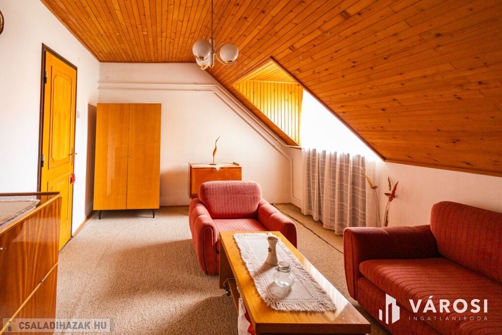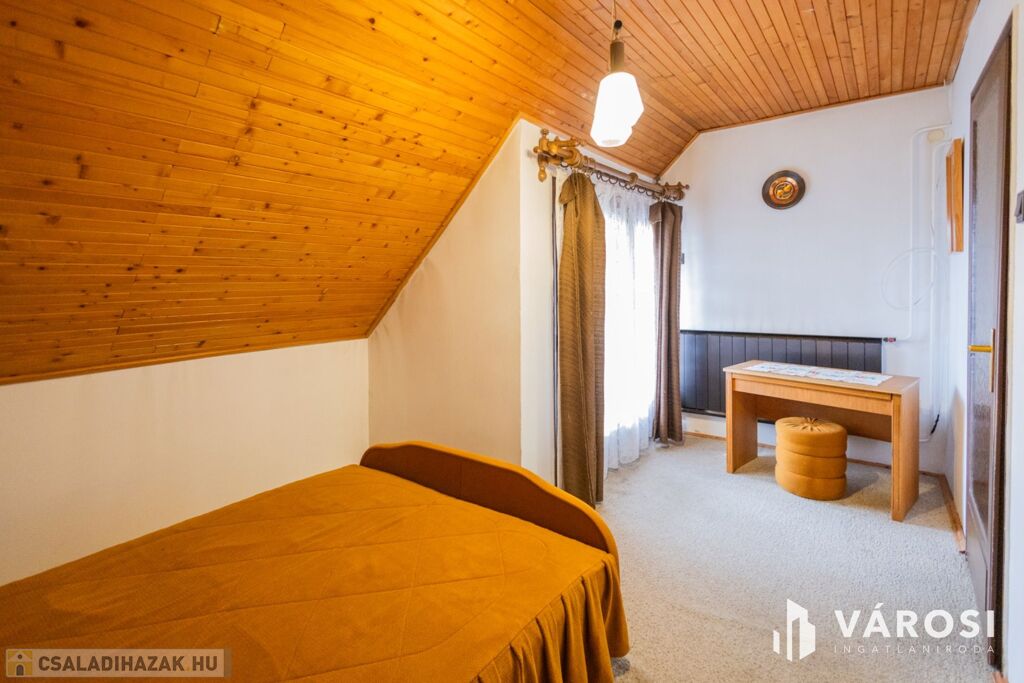 Az ingatlan beton lábazatra épült tégla falazattal, jelenleg is nagyon jó szerkezeti állapotban van. A lakás kétszintes, alapterülete 82 nm. A földszinten egy tágas nappali, külön fürdő és WC, konyha, kamra és egy előtér is helyet kapott. Az emeleti részen két szoba, fürdőszoba, WC és egy nagy gardróbszekrény is helyet kapott. Az otthon melegéről gázkazánról működtetett radiátorfűtés gondoskodik.. A kertet egy kis teraszon keresztül közelíthetjük meg.