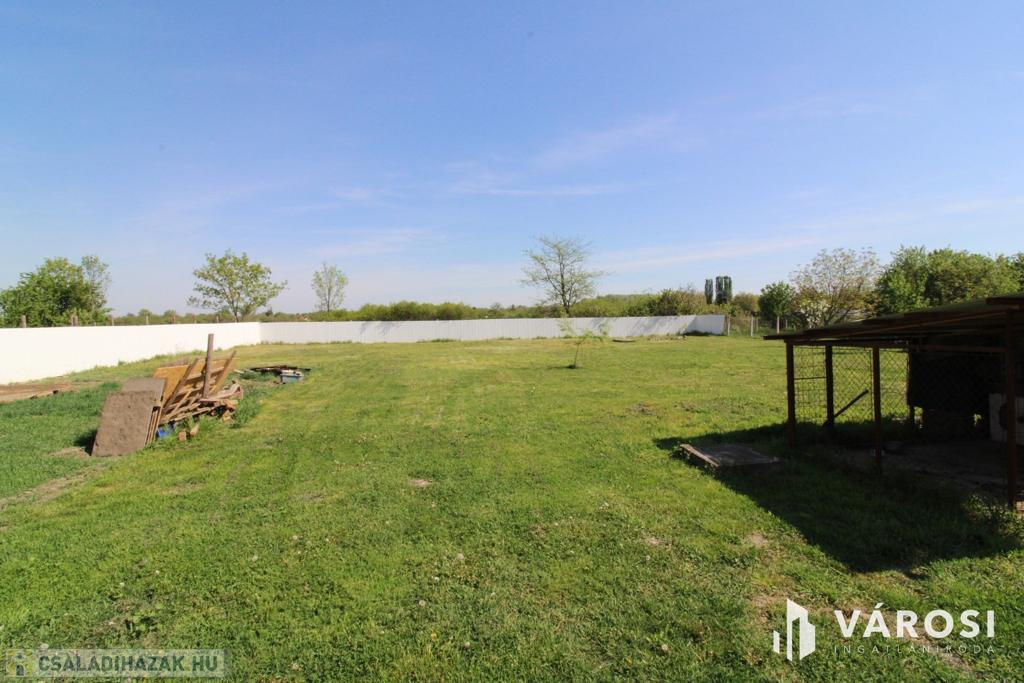 A telek teljes mértékben körbe van kerítve melyen megtalálható egy fúrt kút is, amivel a locsolás biztosítható.