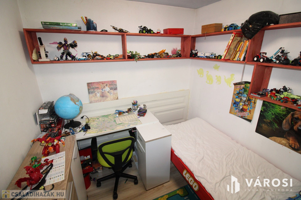 Egy nappali, négy szoba valamint 2 fél szobával rendelkezik, ezeken felül megtalálhatunk kamrát, közlekedőt, külön wc-t és fürdőt, konyhát, étkezőt valamint kamrát is.