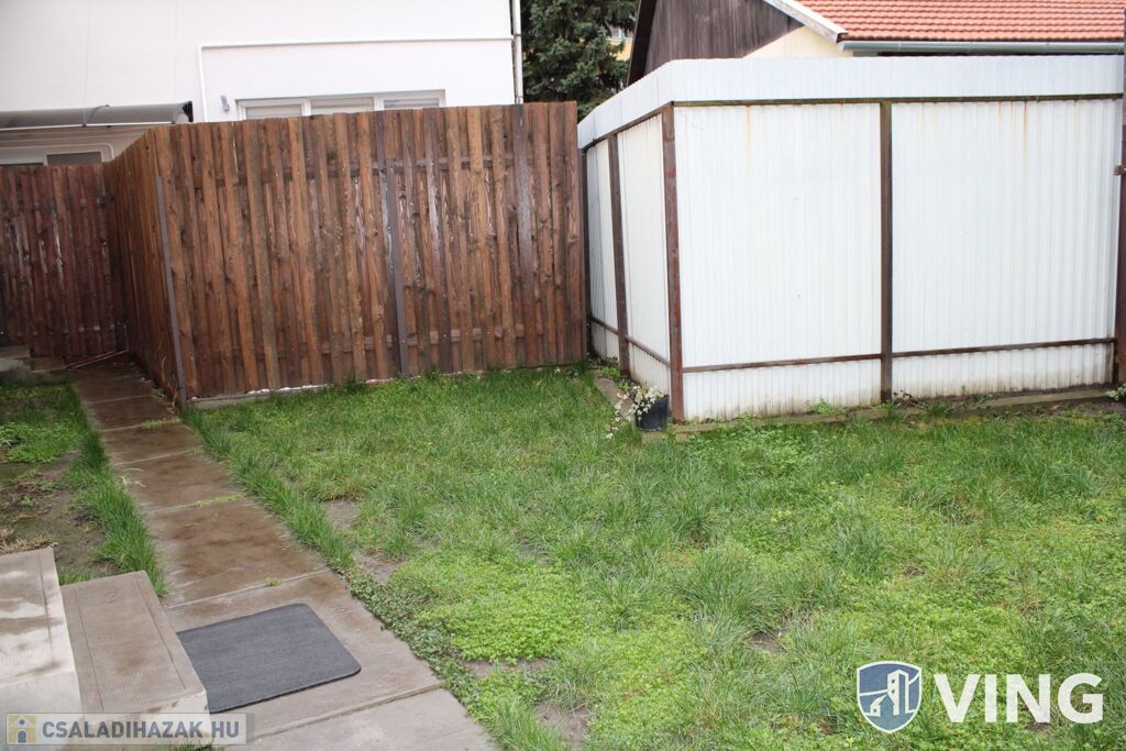 Az udvari rész teljesen körbe van kerítve. Az öntözést az udvaron egy kerti csap biztosítja.
