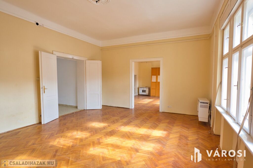 A lakás egy nagypolgári, helyi jelentőségű épületben található, az épületben összesen két lakás került kialakításra. A lakás külön, kizárólagos használatú, saját, utcai bejáratú, 294 m2-es udvarrésszel rendelkezik, jogilag rendezett, társasházként nyilvántartott. Az épület padlástere is megosztott, így a lakás saját padlástérrel rendelkezik!