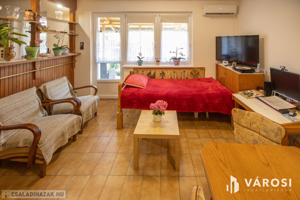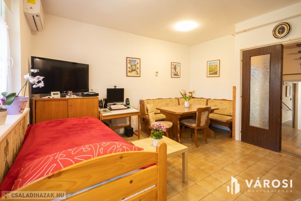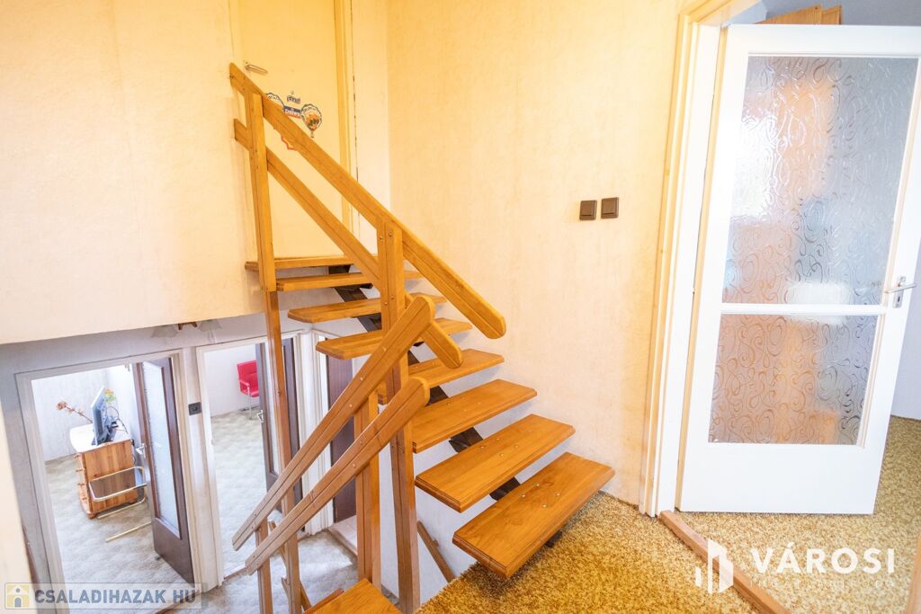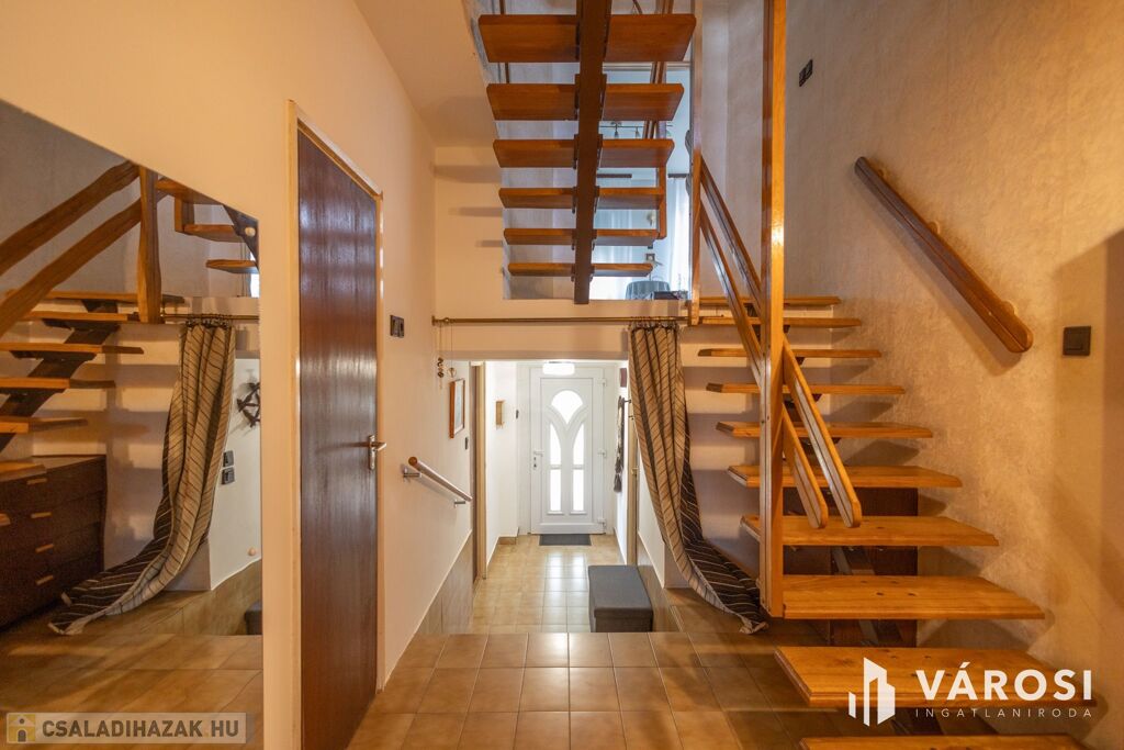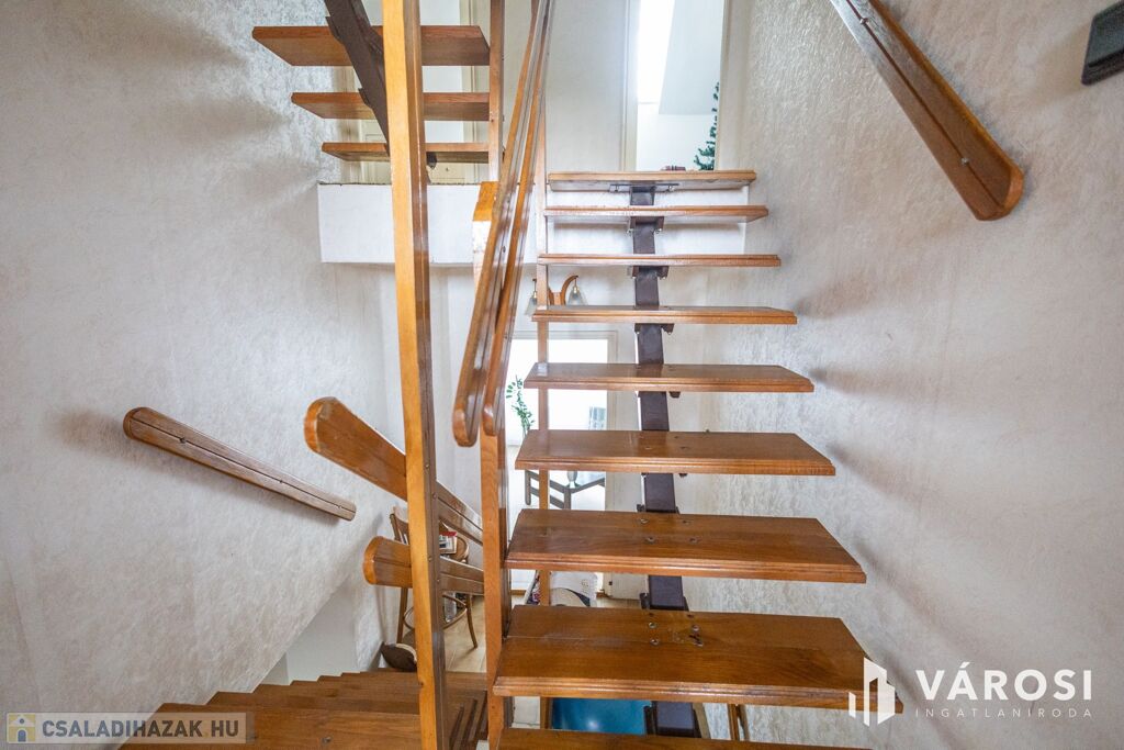 Erre az egyedi elrendezésű házra ez nagyon igaz, hiszen az ingatlanban 2 emelet és 2 félemelet is található, így a szobákban élvezhetjük a csendet és nyugalmat, amíg a nappaliban és az étkezőben zajlik a családi, baráti összejövetel. Az ingatlanban minden helyet kapott, hiszen az étkezővel és kamrával felszerelt konyha mellett 4 szoba, 2 fürdőszoba, külön WC, kazánház, gardrób és garázs is. Ezek mellett lehetőség van a padlástér beépítésére is. A ház alapterülete 148 nm, betonalapra tégla falazattal épült, 2017-ben az ablakok műanyagra lettek cserélve, illetve egy hűtésre és fűtésre is alkalmas klíma lett felszerelve. Az otthon melegéről gázkazánról működtetett padlófűtés gondoskodik minden szinten. A kert alapterülete 381 nm, melyhez egy tágas fedett terasz biztosít kertkapcsolatot, emellett egy szerszámtároló és egy fúrott kút is helyet kapott.