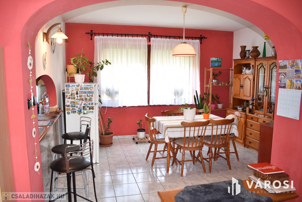 Gyula fürdővárosának egyik legkedveltebb Paradicsomi városrészen eladásra kínálok, egy 1992-évben épült tégla falazatú, 136 m2-es családi házat. Az ingatlan tökéletes választás nagycsaládosok számára, vagy akik több gyermeket szeretnének, illetve olyanok számára, akik az idősödő szüleiket szeretnék maguk mellett tudni, mivel a nappali és 5 szobás, 2 fürdőszobás, 2 Wc-s kertesház helyiségeinek elosztása ezt kényelmesen biztosítja.