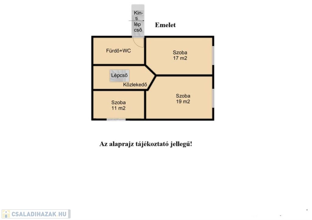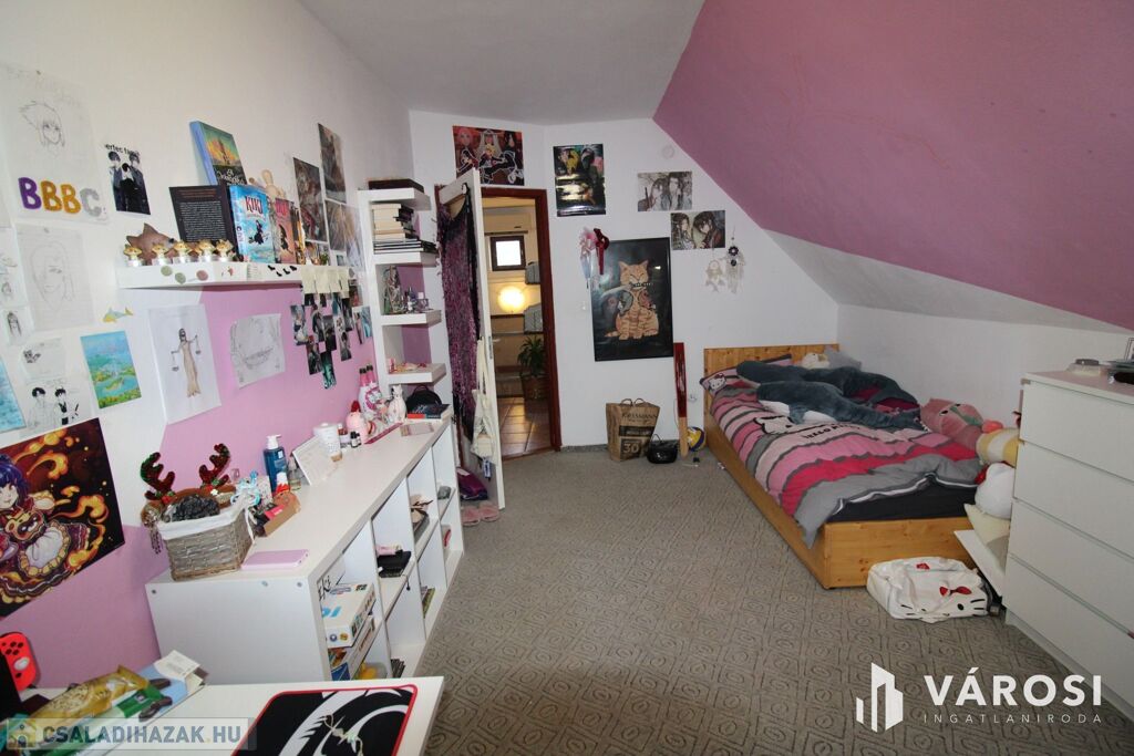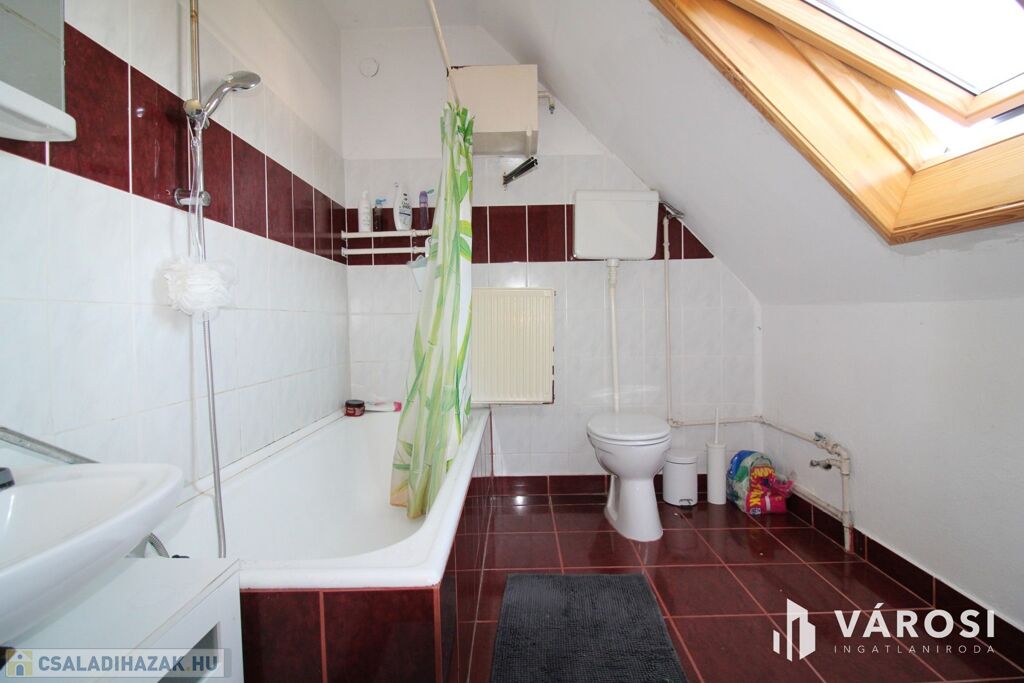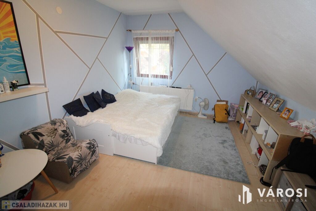 A felső szinten megtalálható egy fürdő+WC, 3 hálószoba, közlekedő.