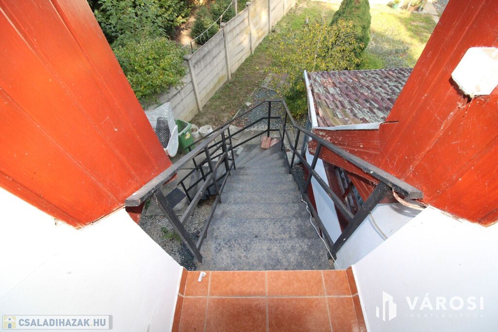 A felső szint egy külső lépcsőfeljárón is megközelíthető, így akár két generáció vagy albérlő számára a bejárás önállóan biztosított.