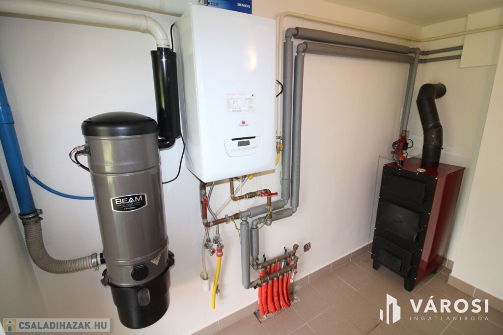 A fűtés radiátoros hőleadással történik egy kombi kazánnal, valamint egy vegyes tüzelésű kazán is beépítésre került.