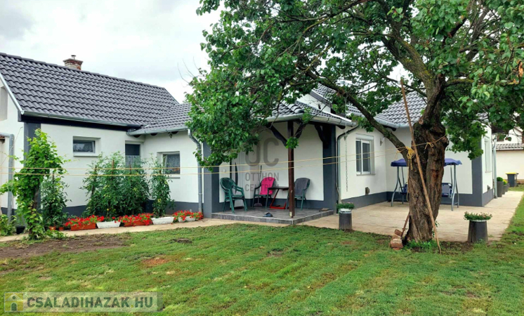 Hajdúböszörmény csendes, mégis központhoz közeli részén eladó egy 87 m²-es, 2 szobás, amerikai konyhás felújított családi ház, 1003 m²-es rendezett telken.