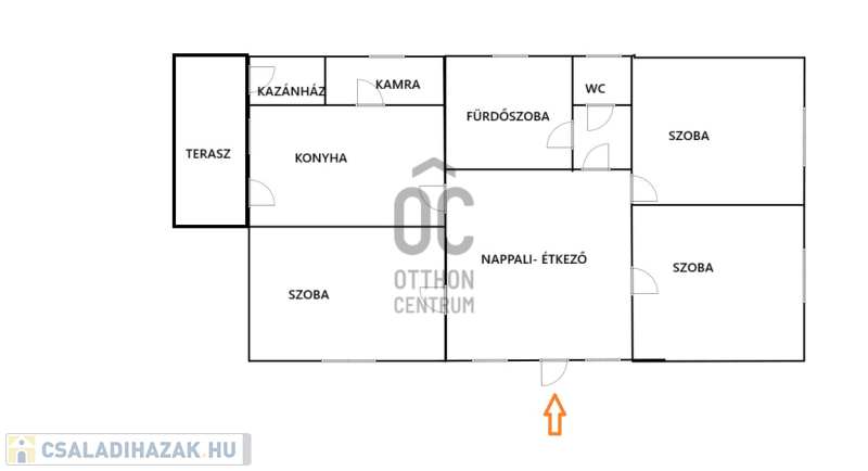 - konyha, nappali, 3 hálószoba, fürdőszoba, kamra,