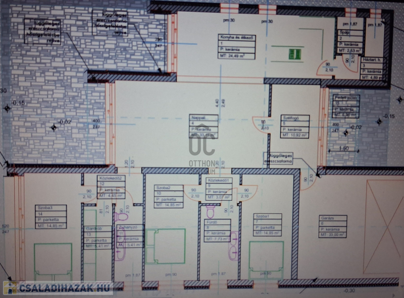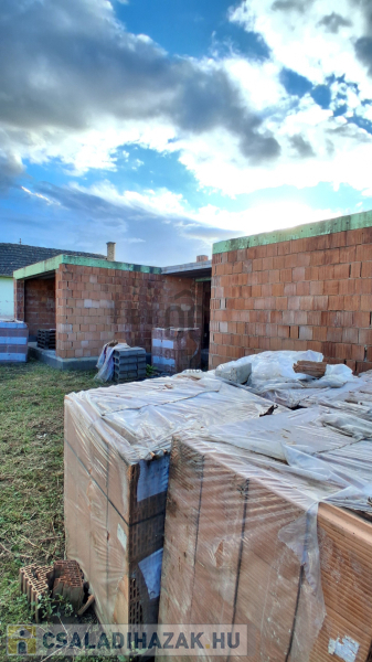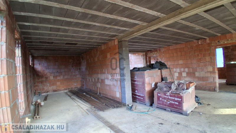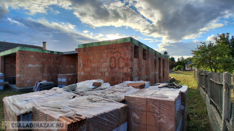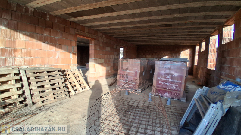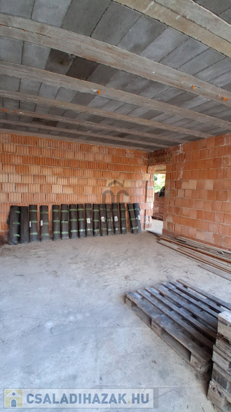 Az eredeti tervek szerint kétoldali tetőterasszal és középen nyeregtetővel épül, ennek köszönhetően a tetőtér járható, és akár tovább is bővíthető. A válaszfalakhoz szükséges tégla már rendelkezésre áll, így az építkezés folytatása azonnal megkezdhető.