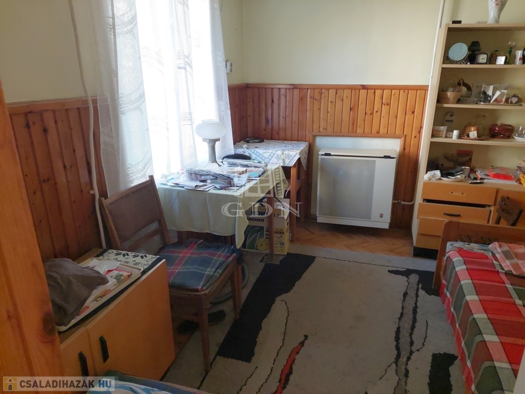 A főépület mögött különálló lakóépületként még van egy szoba, konyha, garázs helységekből álló lakóépület, mely szükség esetén akár különálló lakhatást is biztosíthat. A parkosított udvarra autó beálló út vezet, így akár több autóval is be lehet állni az udvarra.