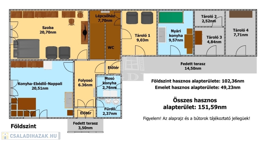 A főépület hasznos alapterülete:151,59nm: