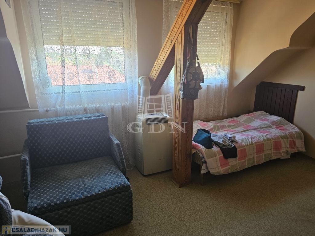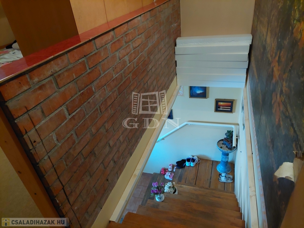 A kertes ház 1986-ban épült, beton alapzattal, részben tégla, részben szilikát falazattal. A tetőszerkezete jó állapotú nyeregtető, cserépfedéssel ellátva. A ház fűtése gázkazánnal és vegyes tüzelésű kazánnal megoldott radiátoros központi fűtés, továbbá több cserépkályha és klíma is rendelkezésre áll. Az épületben a földszinten 3 autónak is elegendő garázs kapott helyet, mely az utca frontjához képest ki van emelve, így nem folyik be a víz, mint a süllyesztett garázsoknál. A lakóépületnek több különálló bejárata van, két generációs házként is hasznosítható.