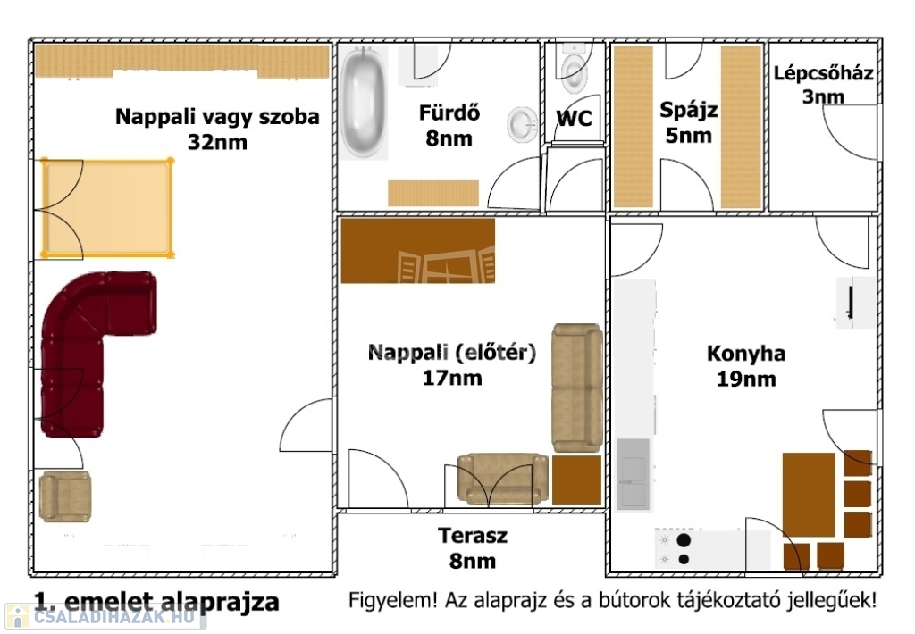 A lakóház nettó alapterülete a 3 szintnek: 91+85+56, így összesen 232nm melyben található: