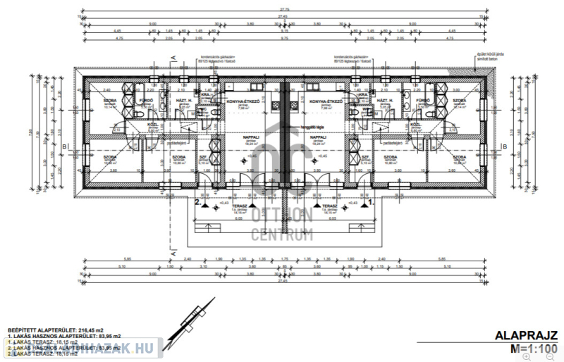 Az ingatlanokhoz 300-400 nm-es önálló telekrész tartozik, az ikerházak nettó alapterülete