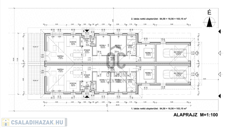 - 84,59 m² nettó hasznos lakóterület + 18,56 m²-es garázs