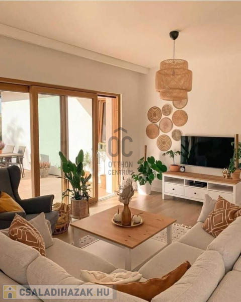 -nappali-konyha étkező 1 légtérben mely csatlakozik egy 12 m2-es fedett teraszhoz