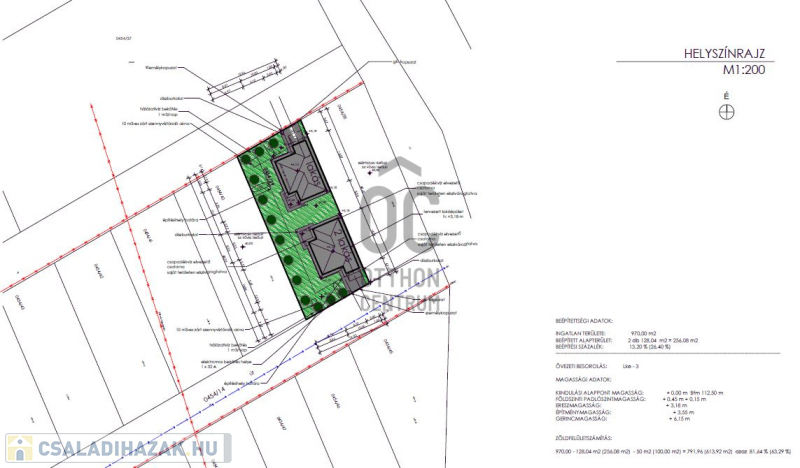 -beépítése max 30%, zöldfelület min. 50%