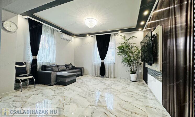 Hajdúsámson belvárosi szakaszán, aszfaltozott, összközműves utcában, új építésű, egyszintes, 3 hálószobás, modern elrendezésű ikerház, saját telekkel, garázzsal eladó.
