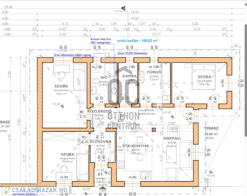 - Fűtés: Gree hőszivattyú + padlófűtés az egész lakásban