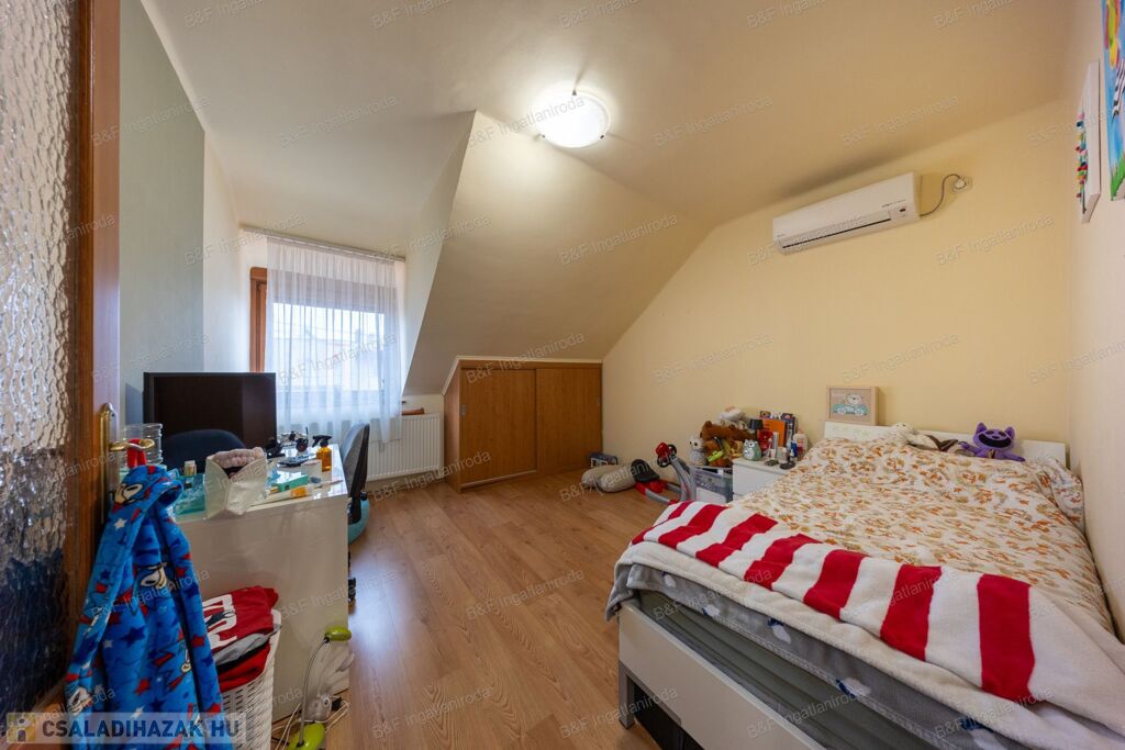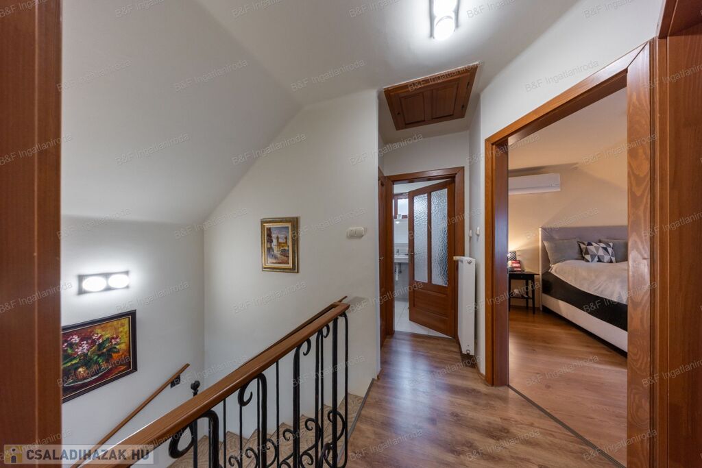 Az emeleten három hálószoba, gardrób, fürdőszoba és erkély biztosítja a kényelmet.