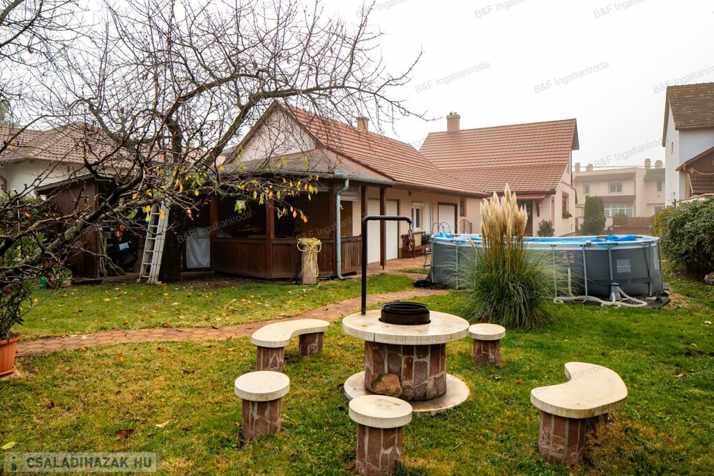 A kert parkosított, filagóriával és szalonnasütővel, ideális családi és baráti összejövetelekhez.