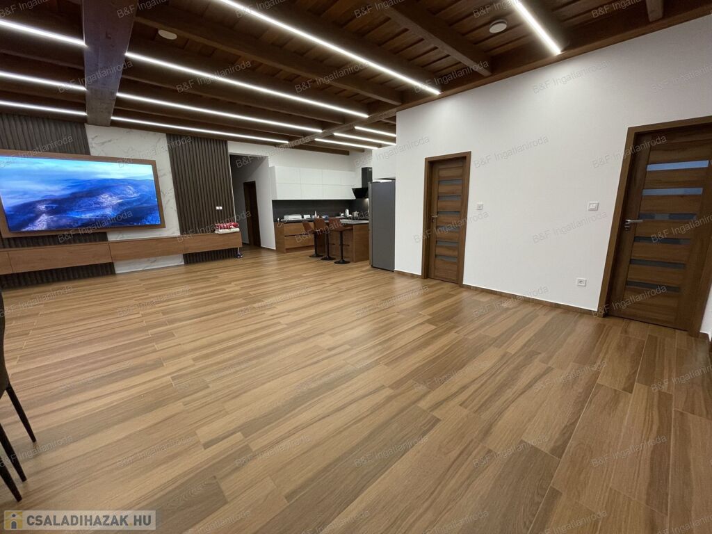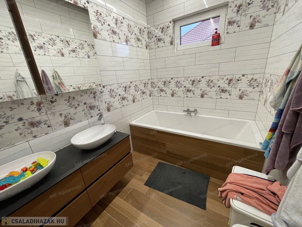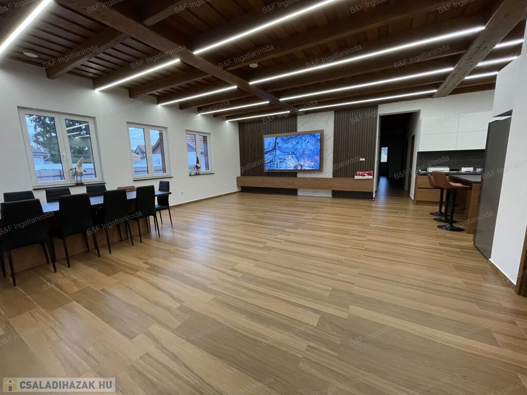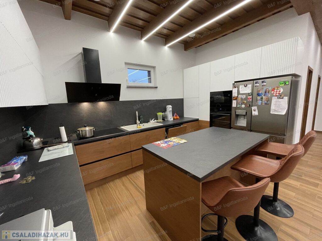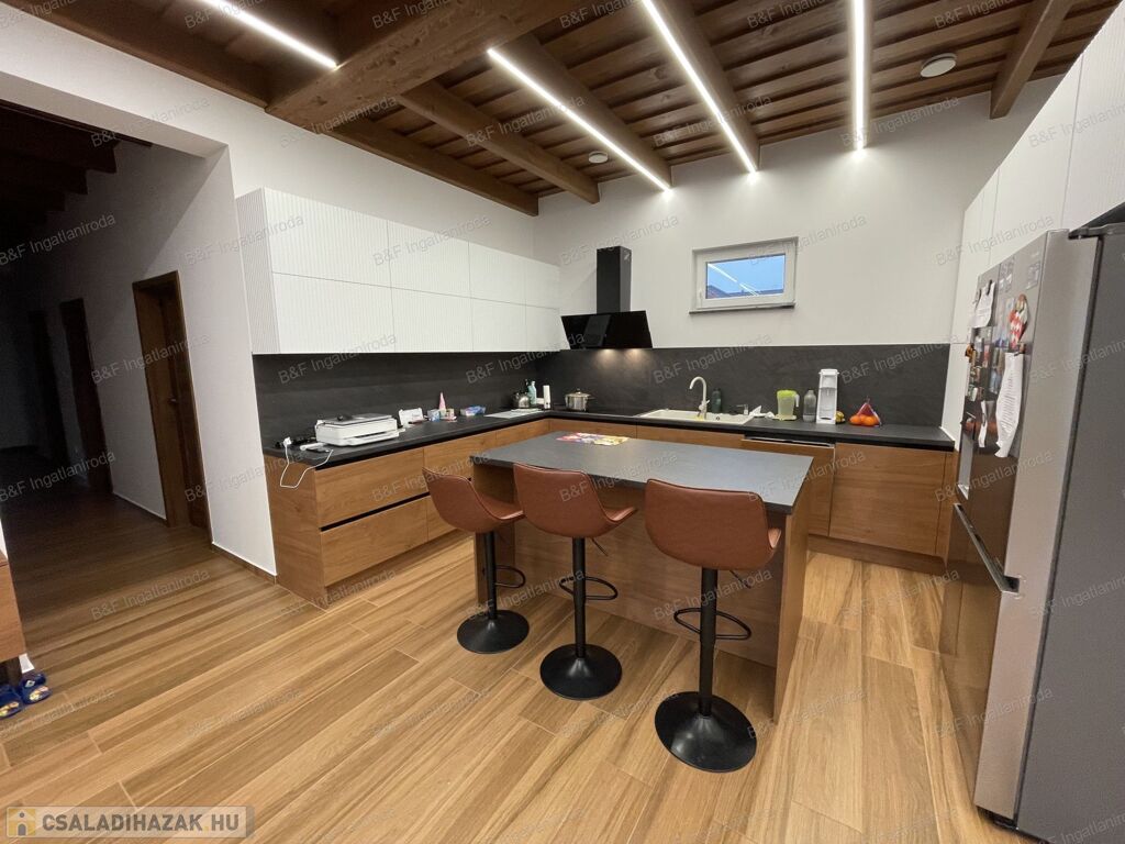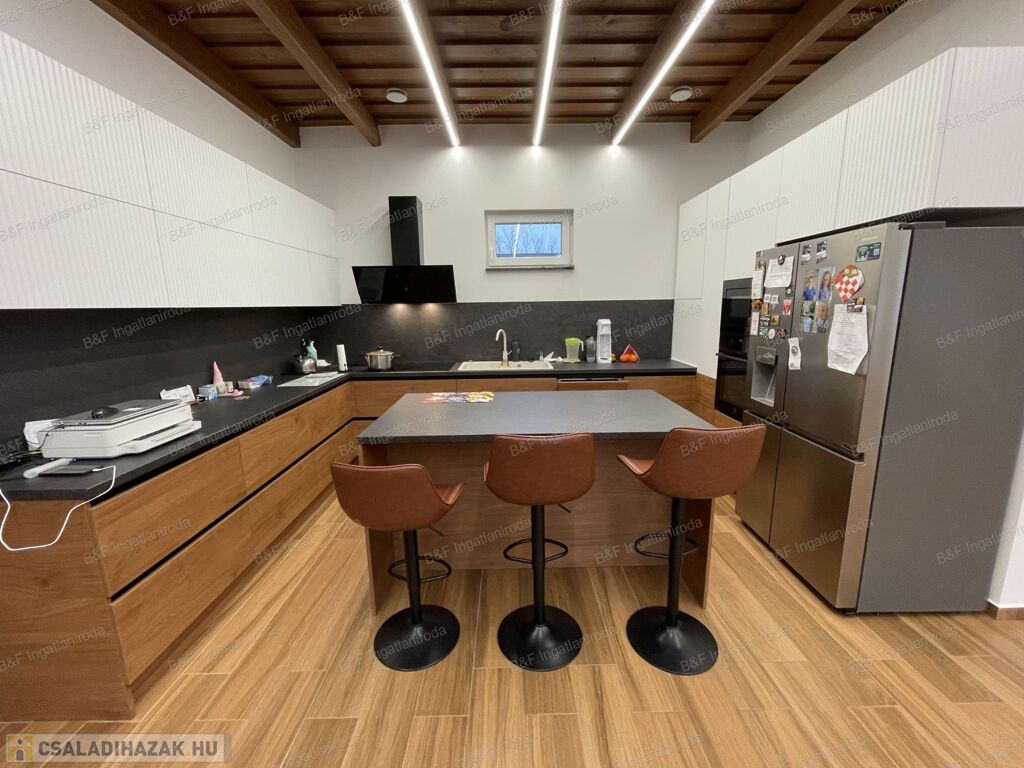 Egy 184,5 m2-es családi ház 5 szobával és egy hatalmas amerikai konyhás nappalival, 3 fürdőszobával és wc-vel, mosókonyhával, minden igényt kielégítve.