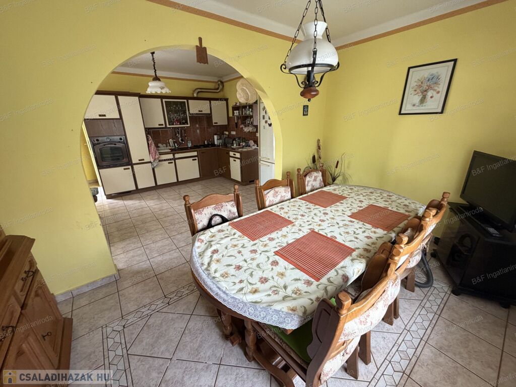 A 130 m²-es ingatlan praktikus elrendezésű: 4 tágas szoba, 2 fürdőszoba és WC biztosítja a kényelmes mindennapokat valamint egy mosókonyha. A ház egyik igazi különlegessége a hatalmas, étkezős konyha, amely tökéletes helyszíne lehet a családi összejöveteleknek és baráti vacsoráknak.