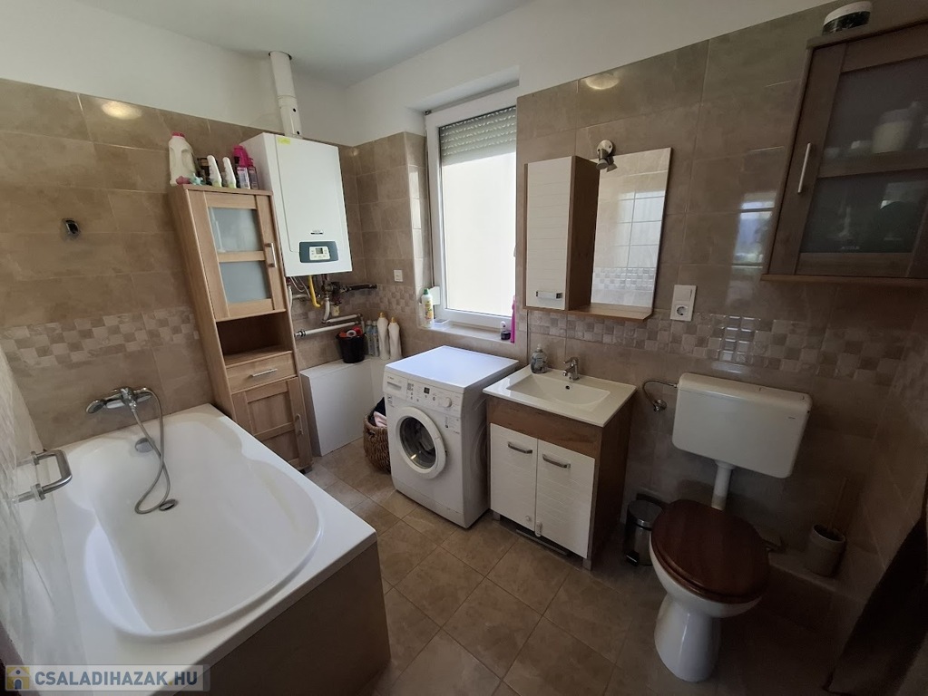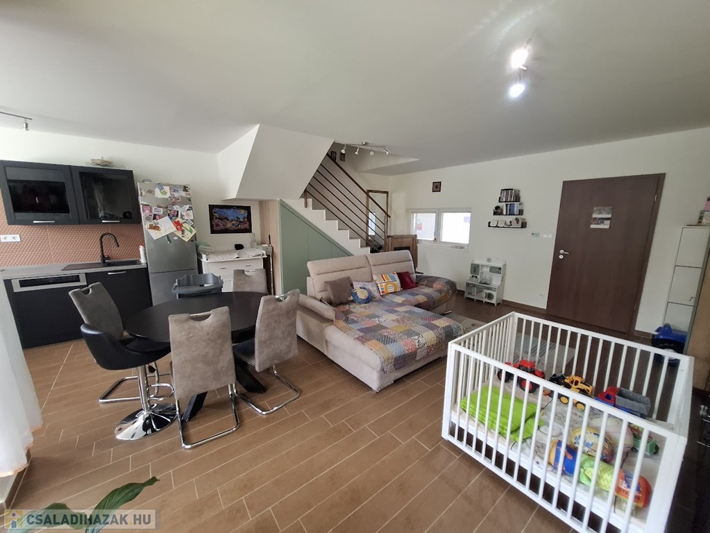 Hajdúszoboszlón Bányász utcán eladó egy 2017-ben épült téglaépítésű szigetelt 96 nm sorház,saját privát, kertkapcsolattal.Nagyon szép igényes fiatalos jó elrendezésű, világos lakás.Műanyag nyílászárók kerültek beépítésre, kívül barna szinben.A sorház 5 cm külső szigetelést kapott.Hatalmas nappali és konyha került egyben kialakításra.Minden beépített szekrény teljesen új az előszobában, illetve a konyhaszekrény is beépített gépekkel felszerelve.A fűtést gáz cirkó fűtés biztosítja, radiátorokkal.Légkondicionáló is felszerelésre került hűtő-fűtő kivitelben.A szobák a felső szinten helyezkednek el és külön nyílnak egymástól, laminált parkettásak.Az ingatlanban 2 fürdőszoba került kialakításra egy zuhanyfülkés illetve egy fürdőkádas a kényelem érdekében.Ha belépünk tágas nagy előtér fogad beépített szekrénnyel ami a cipők és kabátok elhelyezése szempontjából nagyon praktikus.Tágas világos jól élhető ingtalan csak ajánlani tudjuk.Tartozik hozzá egy udvari parkoló ebben az árban.Igény esetén garázs is vásárolható hozzá külön vételár ellenében.Szép gondozott udvar, és jó fiatalos lakóközösség jellemzi.Bármikor megtekinthető időpont egyeztetéssel.Az ár irányár.Közelben központ,boltok,fürdő,orvosi rendelő.További ingatlanjaink a Teleingatlan oldalán több nyelven is hitel ügyintézéssel és ügyvédi segítségnyújtással egybekötve.