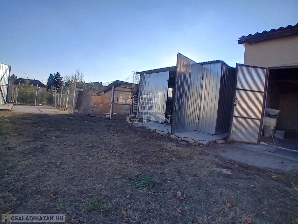 A telken egy nagy mobil garázs, 20m2 és egy tégla garázs, ahol van szerelőakna.