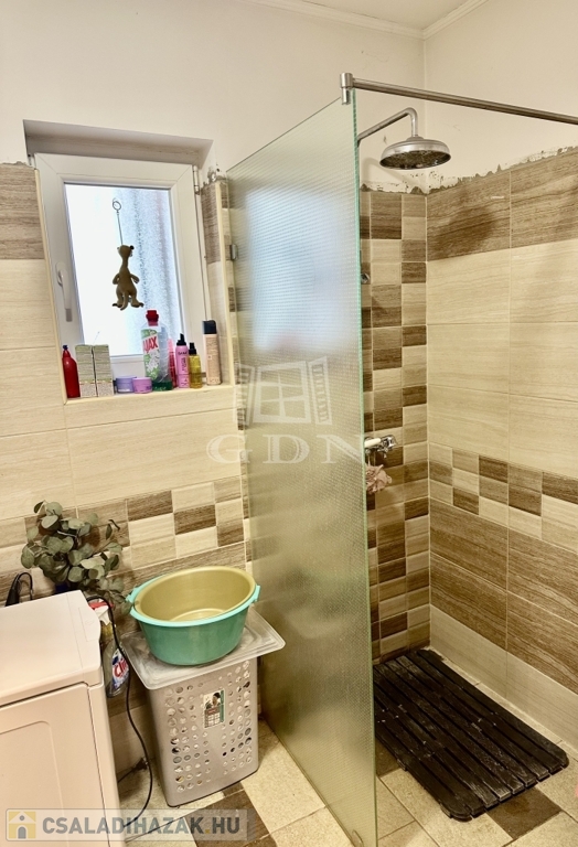 A házban 2 szoba található, valamint, egy tágas ebédlő konyhával. A fürdőszobában zuhanyzó került kialakításra és külön helyiségben a wc.
