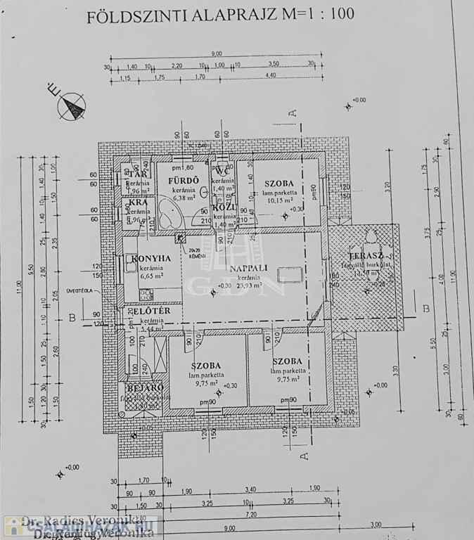Tájolása: D-K-i, méretek és elrendezés az alaprajzon látható.